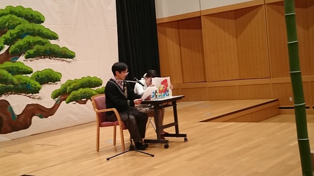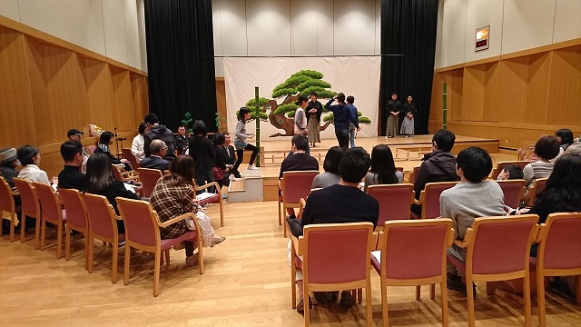 親子で楽しむデッサン能 2018 2025.11.23 日 時:2018年12月16日 13:30~15:30場 所:いかるがホール 2階小ホール参加人数:48人 演者・ボランティア18名親子で楽しむデッサン能を行いました。植田先生がこの度、日本能楽会の功労者表彰賞を受賞されたお祝という意味もあり、能楽の教えを受けた人たちが、遠方よりたくさん来場されました。皆様のおかげで素晴らしいイベントとなりましたこと,お礼申し上げます。(能楽クイズ&お話し、すり足や所作の体験、能管体験&演奏、紙芝居、デッサン能など)