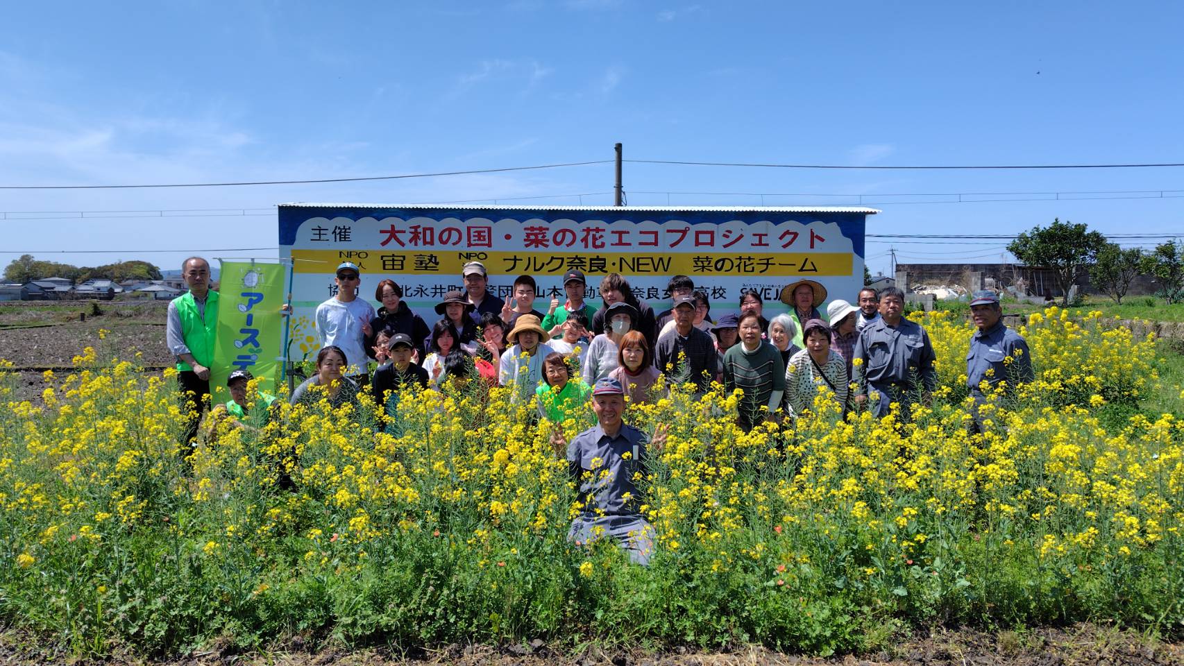 天気は快晴。菜の花も数日続いた花冷えの気候のおかげでまだまだ花盛りの状態で開催できました。