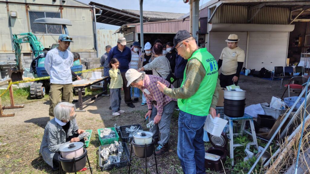 | 奈良市地球温暖化対策地域協議会 | 野の花の観察・旬当てクイズ・被災時に役立つ炊飯(新聞紙10枚で米4合を炊いて試食) |