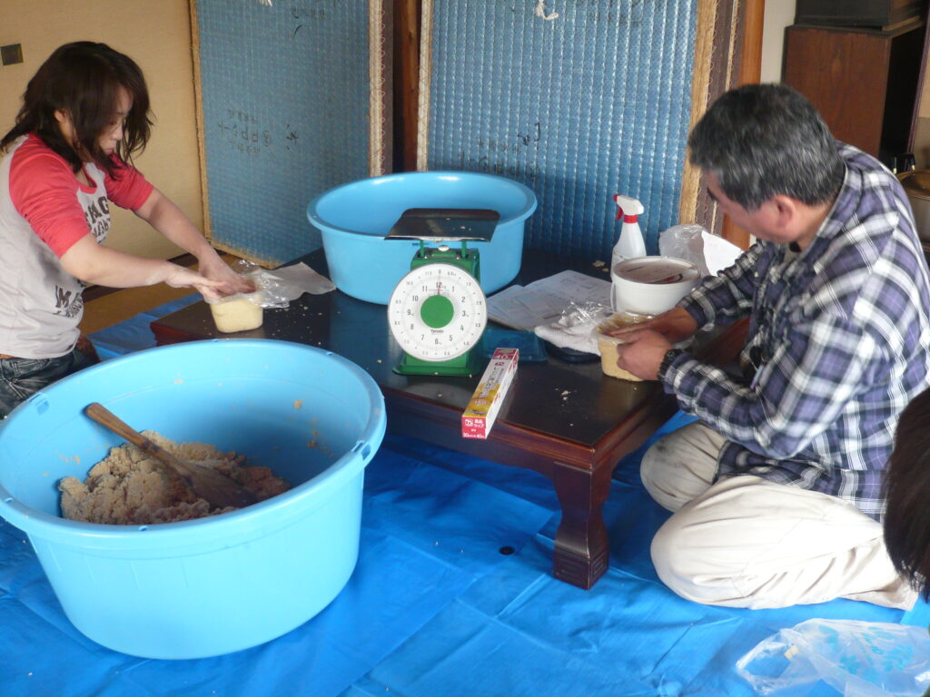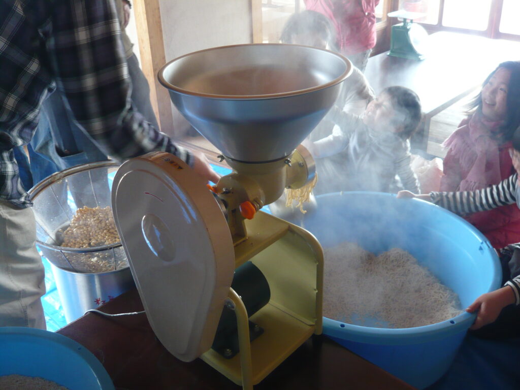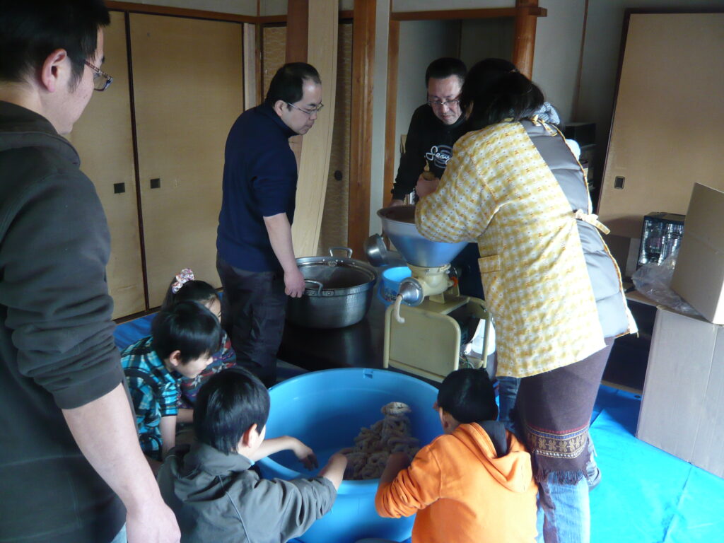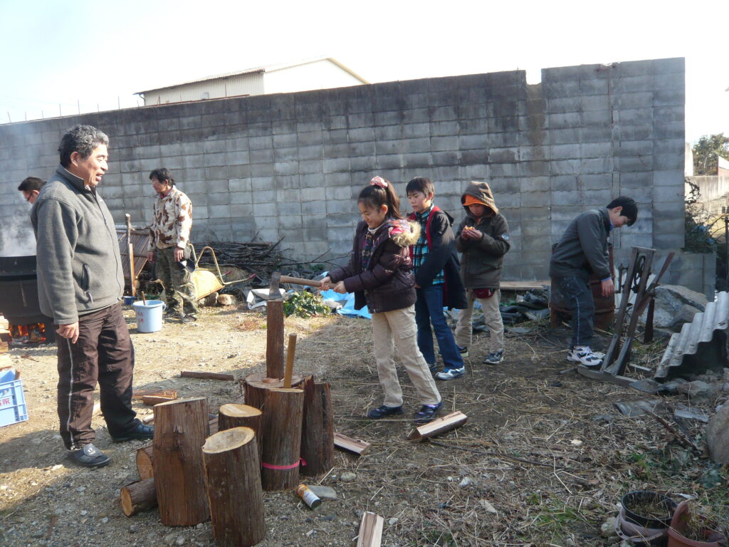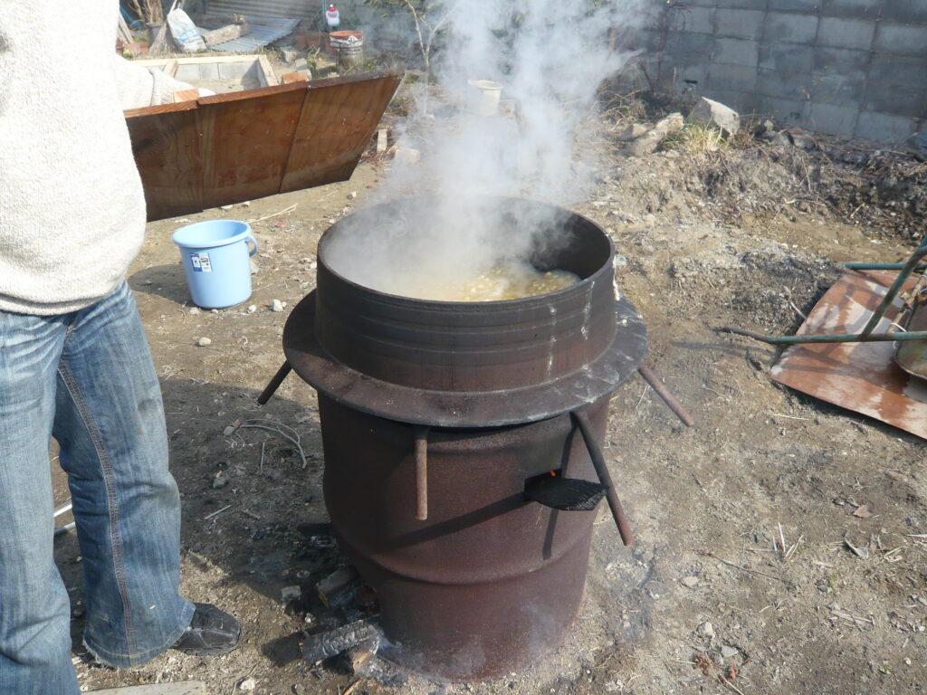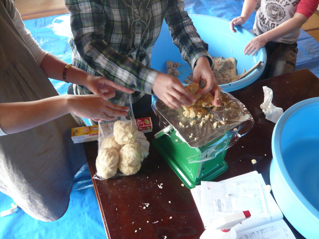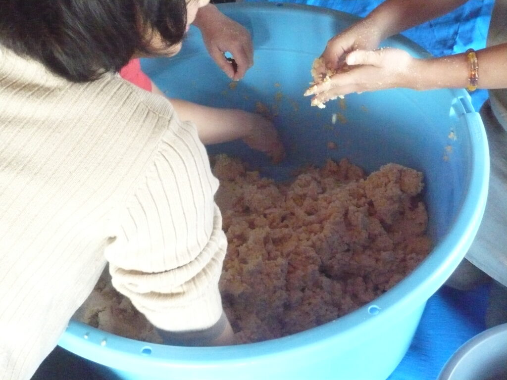 味噌作り 薪割り 2025.11.24 こだわりの大豆にこだわりの麹と塩を使った 米味噌作りです。こだわりの大豆、こだわりの麹、こだわりの塩で作ります。作った味噌は、各自持ち帰って寝かせてから自分で使ってもらいます。毎年2月上旬に宙塾事務所で開催します。 ※現在休止中 薪割り 大豆を蒸す 蒸した大豆を潰す 潰した大豆を米麹に混ぜていく 均一に混ぜていく 寝かせる為に容器に入れる 味噌団子にしてみる 餅を焼いて食べてみる 味わってみる 活動記録 味噌づくり体験 2025.11.23 味噌づくり