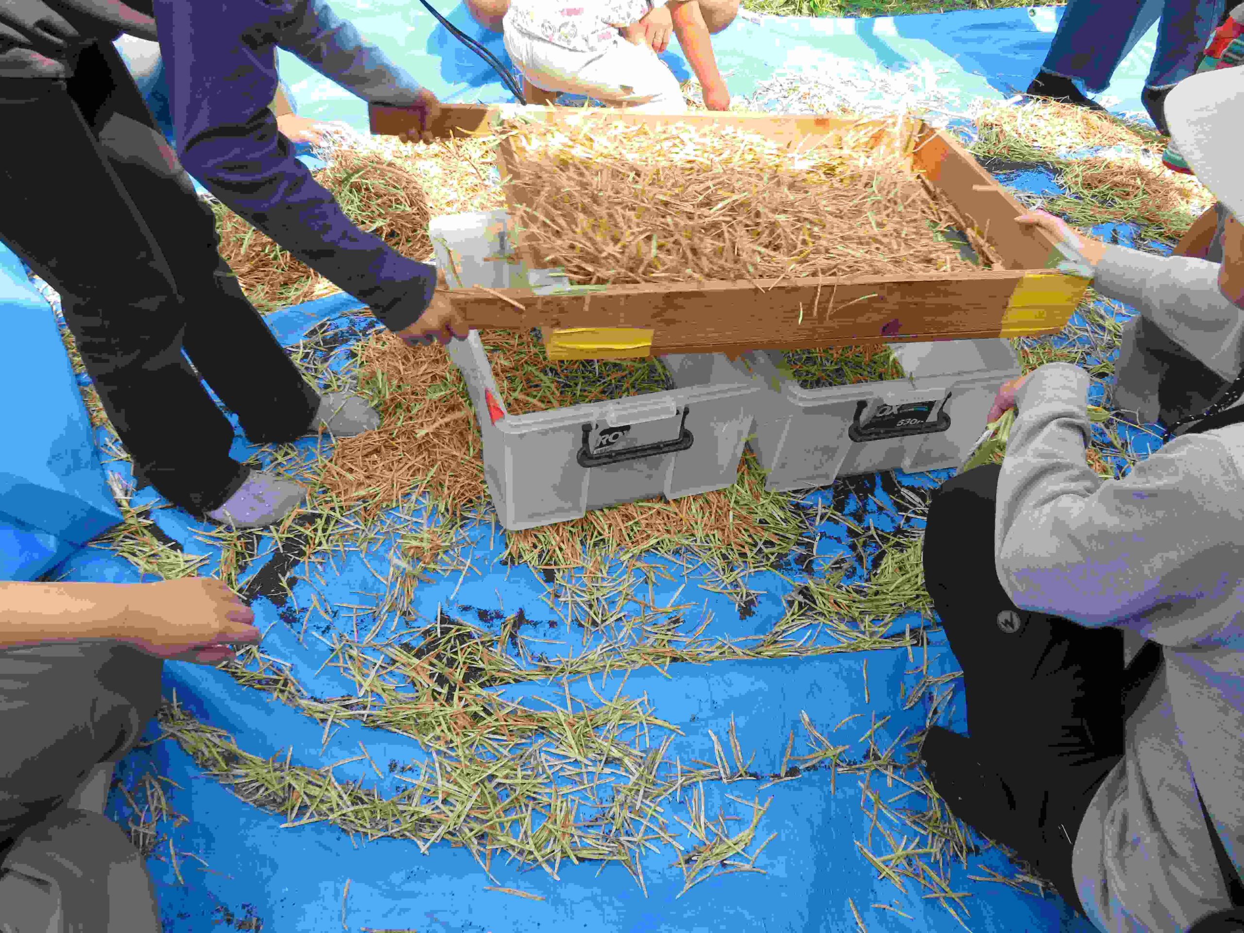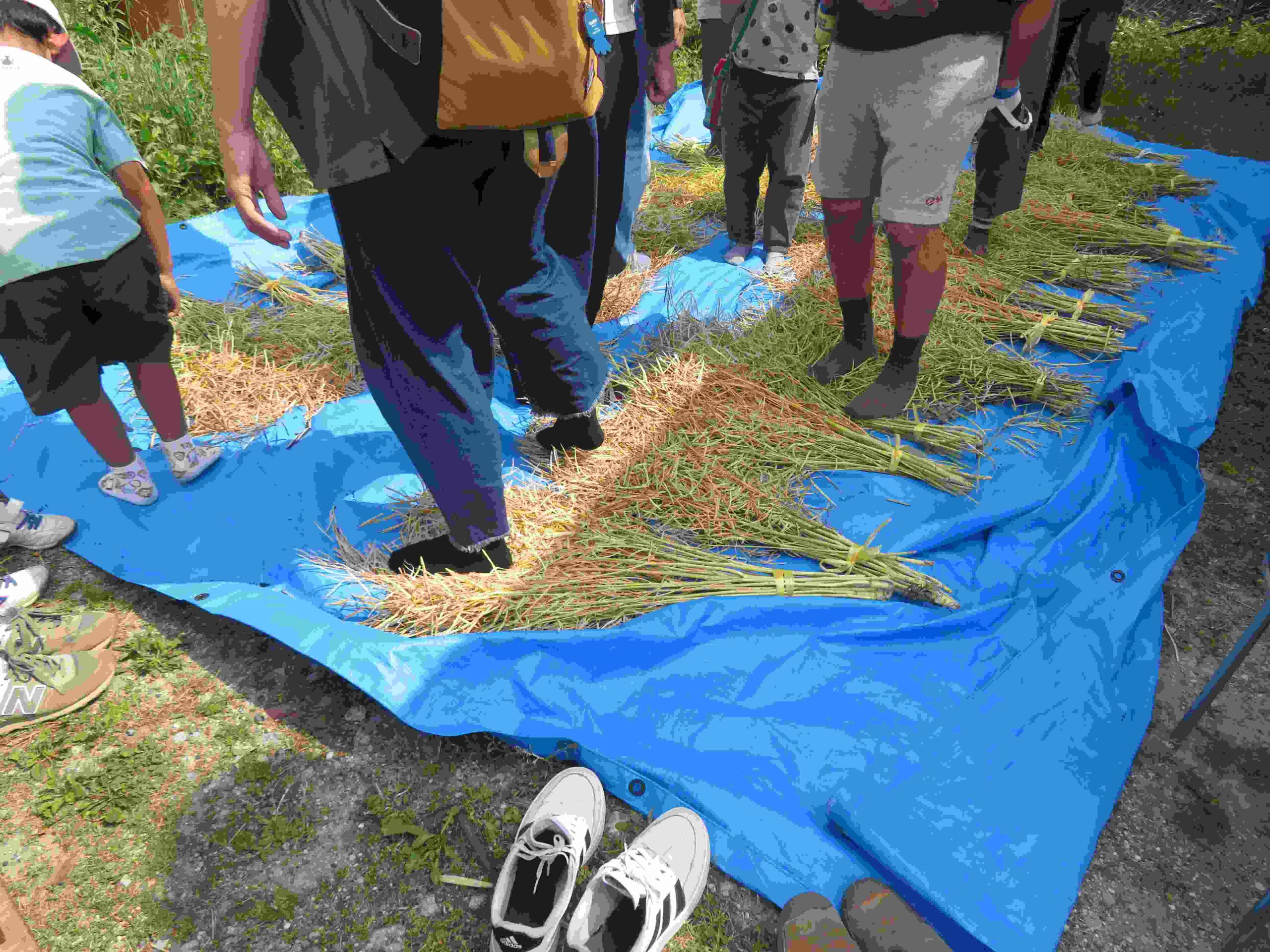 | 5月下旬 | 刈り取り | 鎌で手刈り・ひもで束ねて天日干しをする |